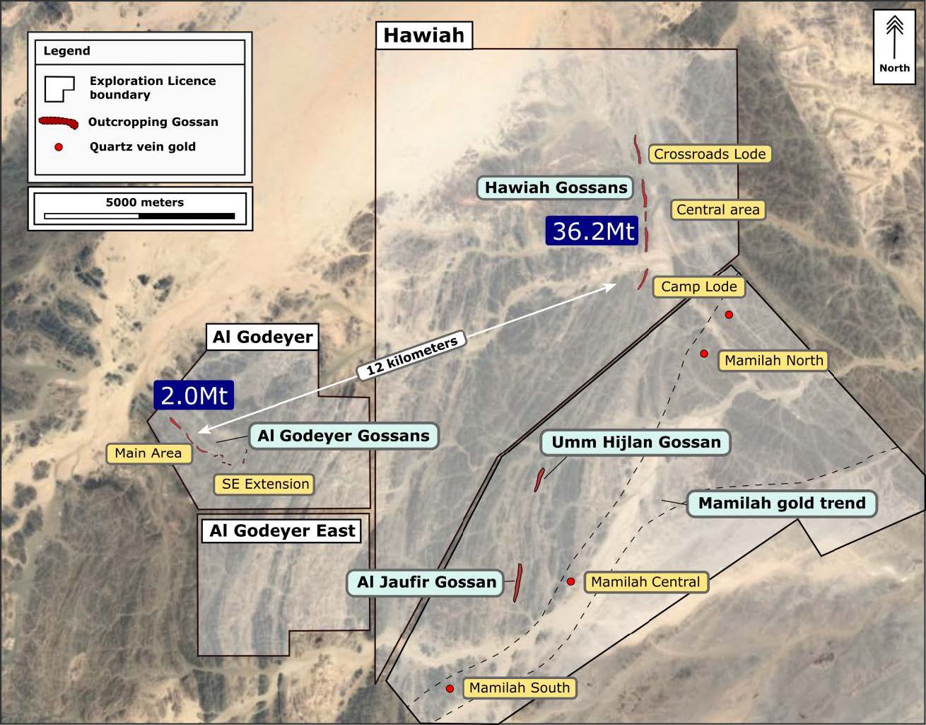 - Maiden Resources have also been declared at the proximal Al Godeyer deposit of 2.0Mt